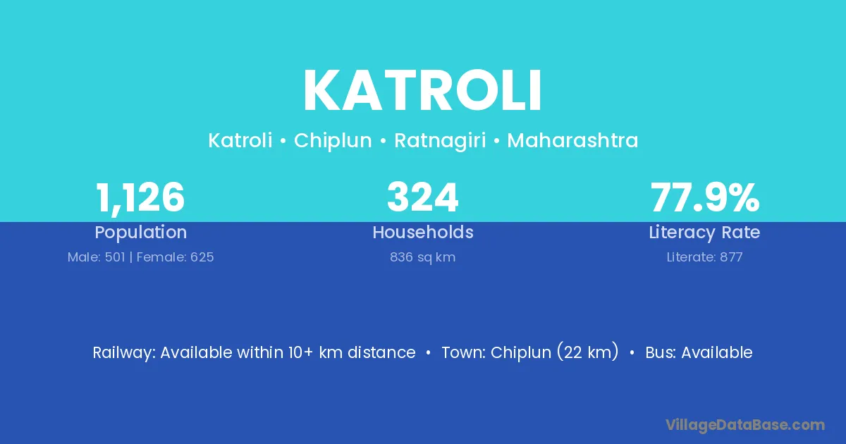 Chiplun (22 km) is the nearest town to Katroli village for major economic activities and is located approximately 22 km away.