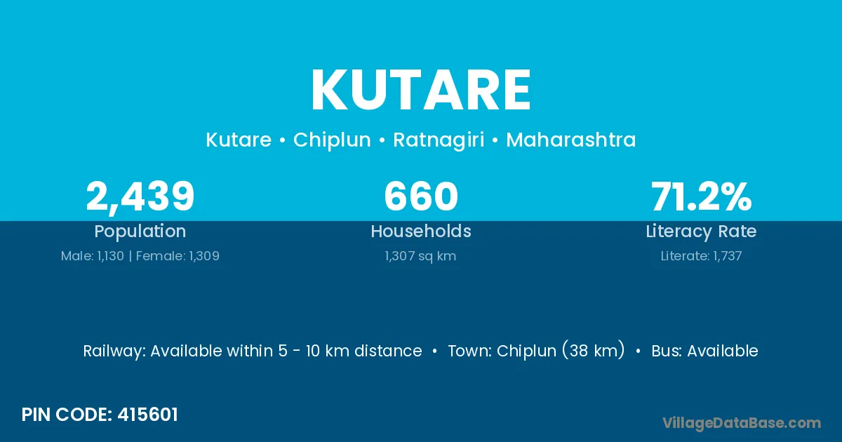 Chiplun (38 km) is the nearest town to Kutare village for major economic activities and is located approximately 38 km away.