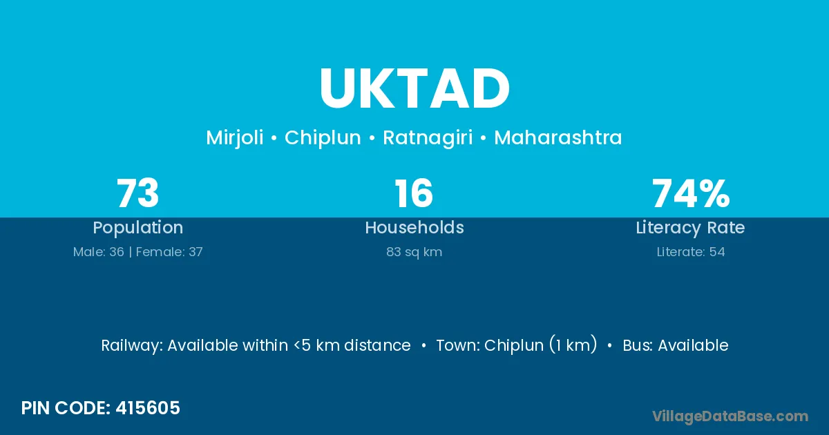 Chiplun (1 km) is the nearest town to Uktad village for major economic activities and is located approximately 1 km away.