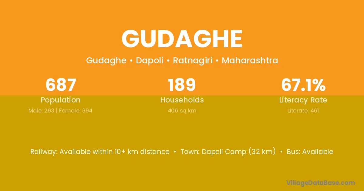 Dapoli Camp (32 km) is the nearest town to Gudaghe village for major economic activities and is located approximately 32 km away.