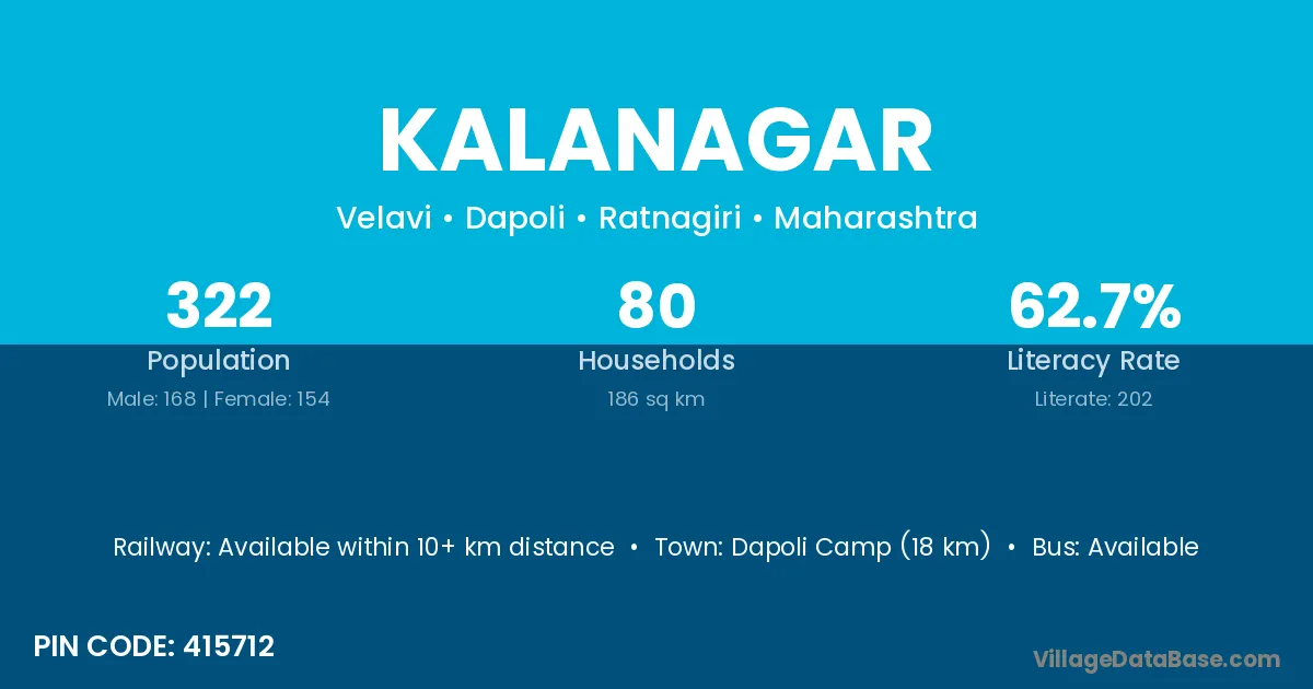 Dapoli Camp (18 km) is the nearest town to Kalanagar village for major economic activities and is located approximately 18 km away.