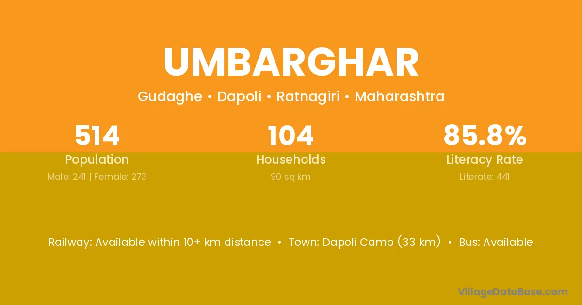 Dapoli Camp (33 km) is the nearest town to Umbarghar village for major economic activities and is located approximately 33 km away.