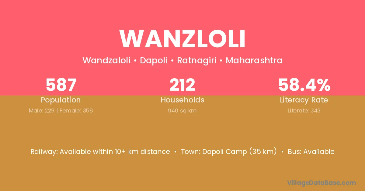 Wanzloli village has a total population of 587 people, of which 229 are males and 358 are females.