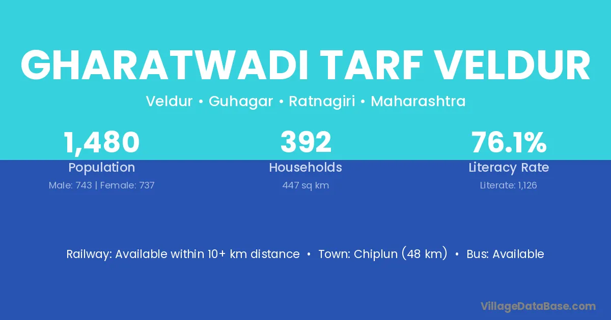 Gharatwadi Tarf Veldur village has a total population of 1,480 people, of which 743 are males and 737 are females.