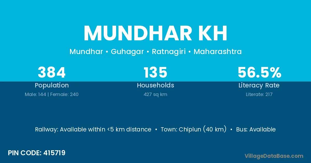 Chiplun (40 km) is the nearest town to Mundhar Kh village for major economic activities and is located approximately 40 km away.