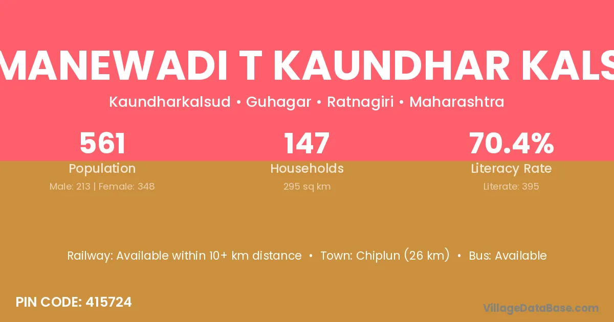 Ramanewadi T Kaundhar Kalsur village has a total population of 561 people, of which 213 are males and 348 are females.