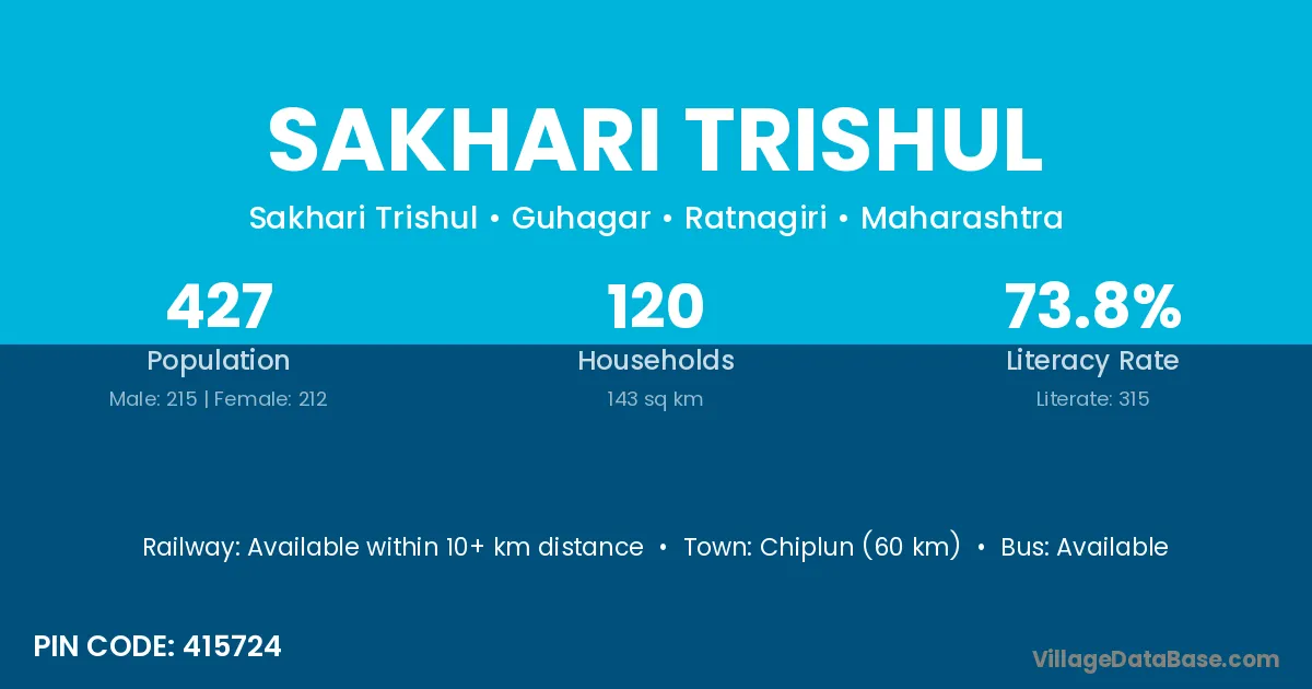 Sakhari Trishul village has a total population of 427 people, of which 215 are males and 212 are females.
