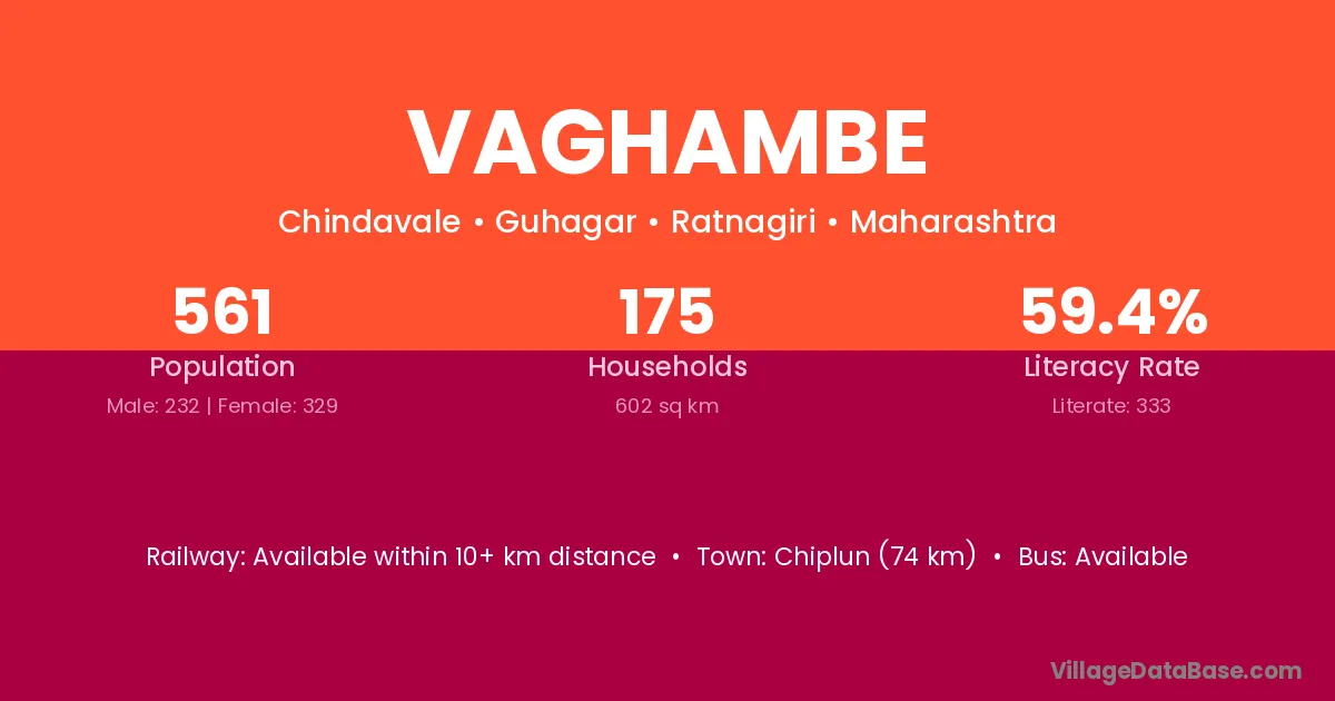 Chiplun (74 km) is the nearest town to Vaghambe village for major economic activities and is located approximately 74 km away.