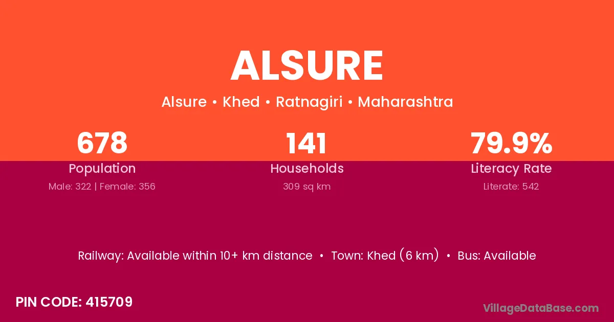 Khed (6 km) is the nearest town to Alsure village for major economic activities and is located approximately 6 km away.
