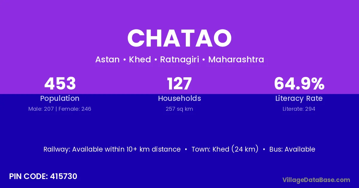 Khed (24 km) is the nearest town to Chatao village for major economic activities and is located approximately 24 km away.