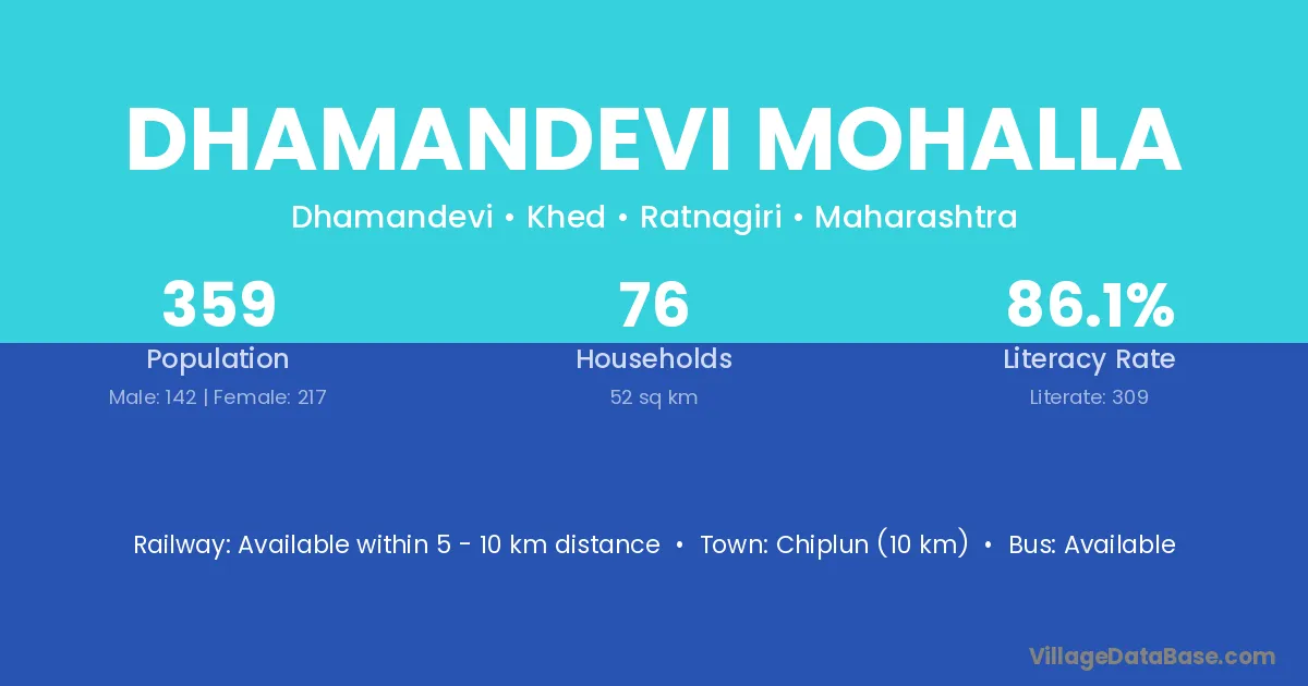 Chiplun (10 km) is the nearest town to Dhamandevi Mohalla village for major economic activities and is located approximately 10 km away.