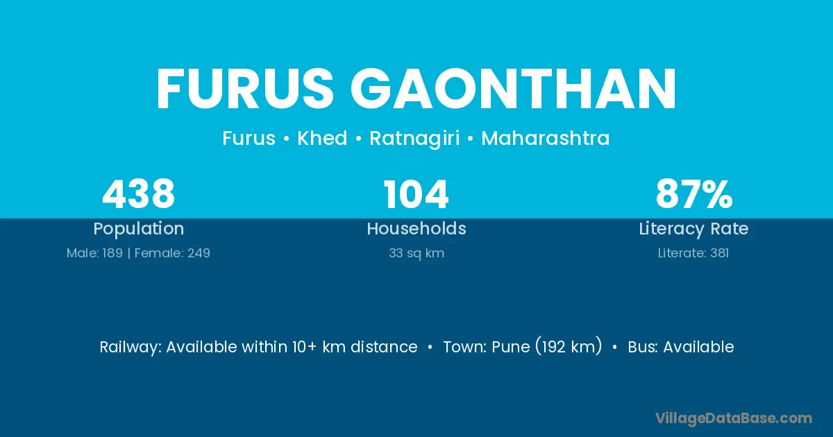 Pune (192 km) is the nearest town to Furus Gaonthan village for major economic activities and is located approximately 192 km away.