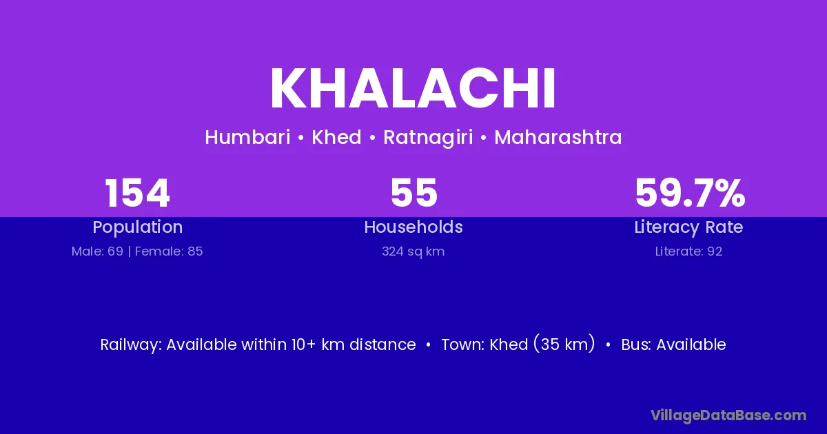 Khed (35 km) is the nearest town to Khalachi village for major economic activities and is located approximately 35 km away.