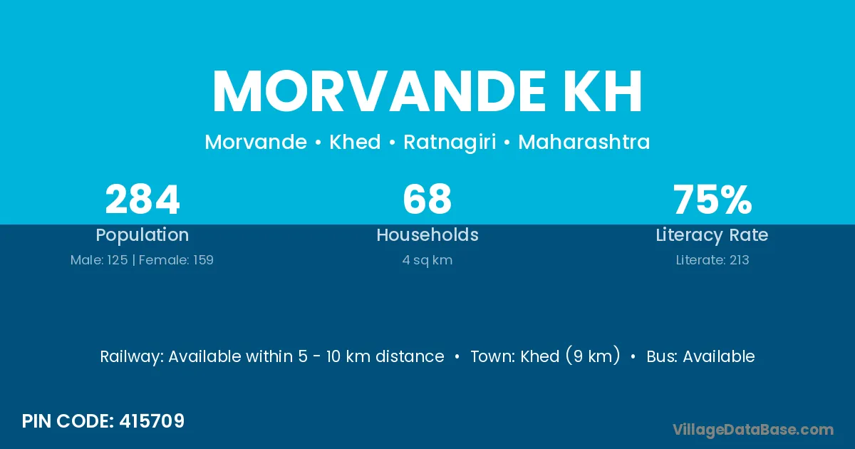 Khed (9 km) is the nearest town to Morvande Kh village for major economic activities and is located approximately 9 km away.