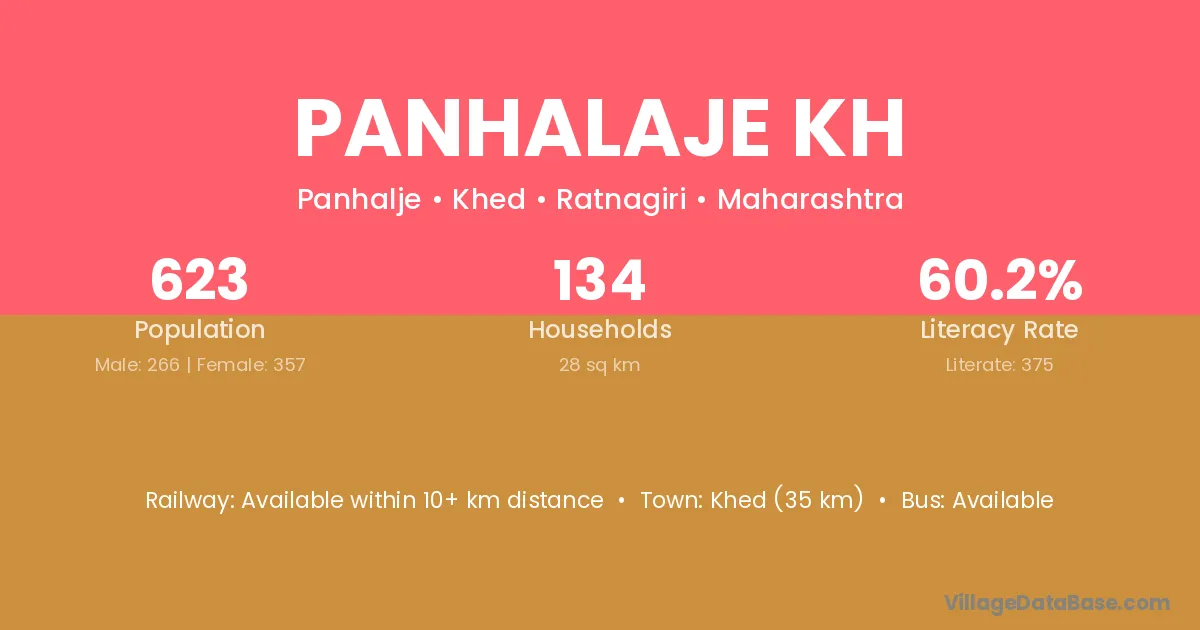 Panhalaje Kh village has a total population of 623 people, of which 266 are males and 357 are females.