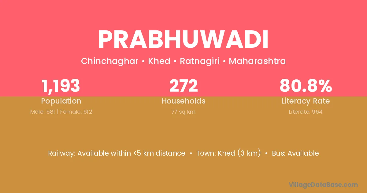 Prabhuwadi village has a total population of 1,193 people, of which 581 are males and 612 are females.