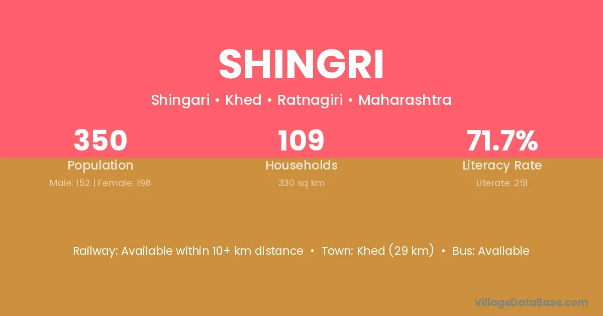 Khed (29 km) is the nearest town to Shingri village for major economic activities and is located approximately 29 km away.