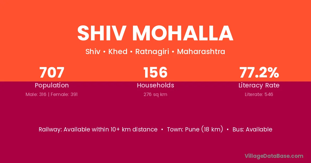 Pune (18 km) is the nearest town to Shiv Mohalla village for major economic activities and is located approximately 18 km away.