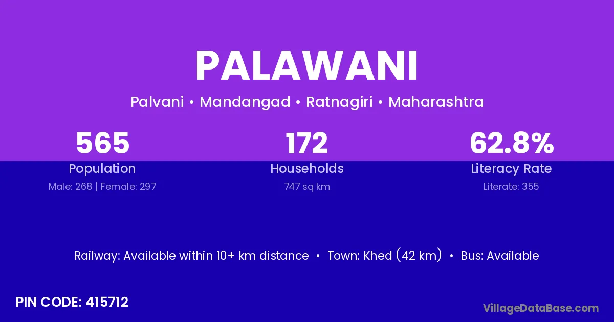 Khed (42 km) is the nearest town to Palawani village for major economic activities and is located approximately 42 km away.