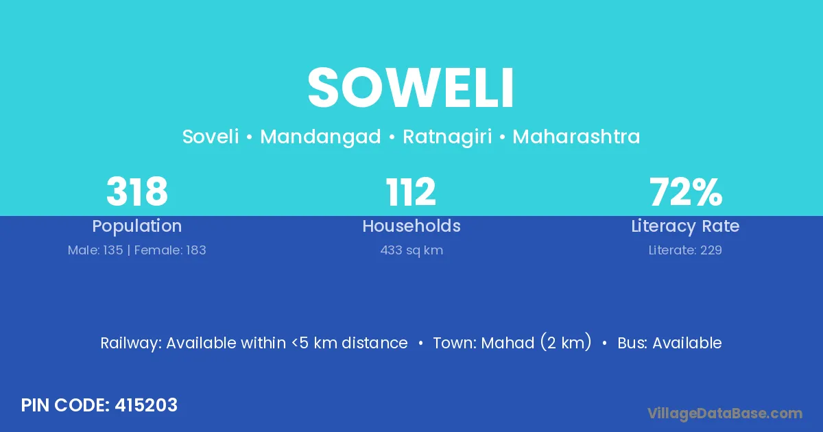 Mahad (2 km) is the nearest town to Soweli village for major economic activities and is located approximately 2 km away.