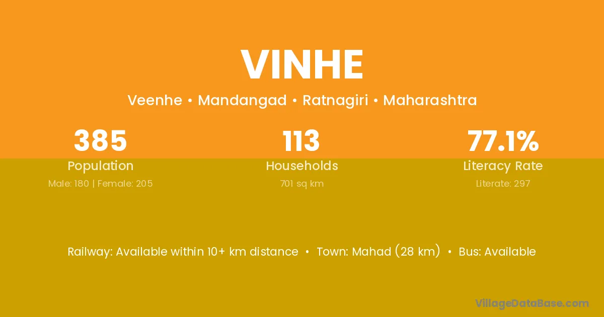 Mahad (28 km) is the nearest town to Vinhe village for major economic activities and is located approximately 28 km away.
