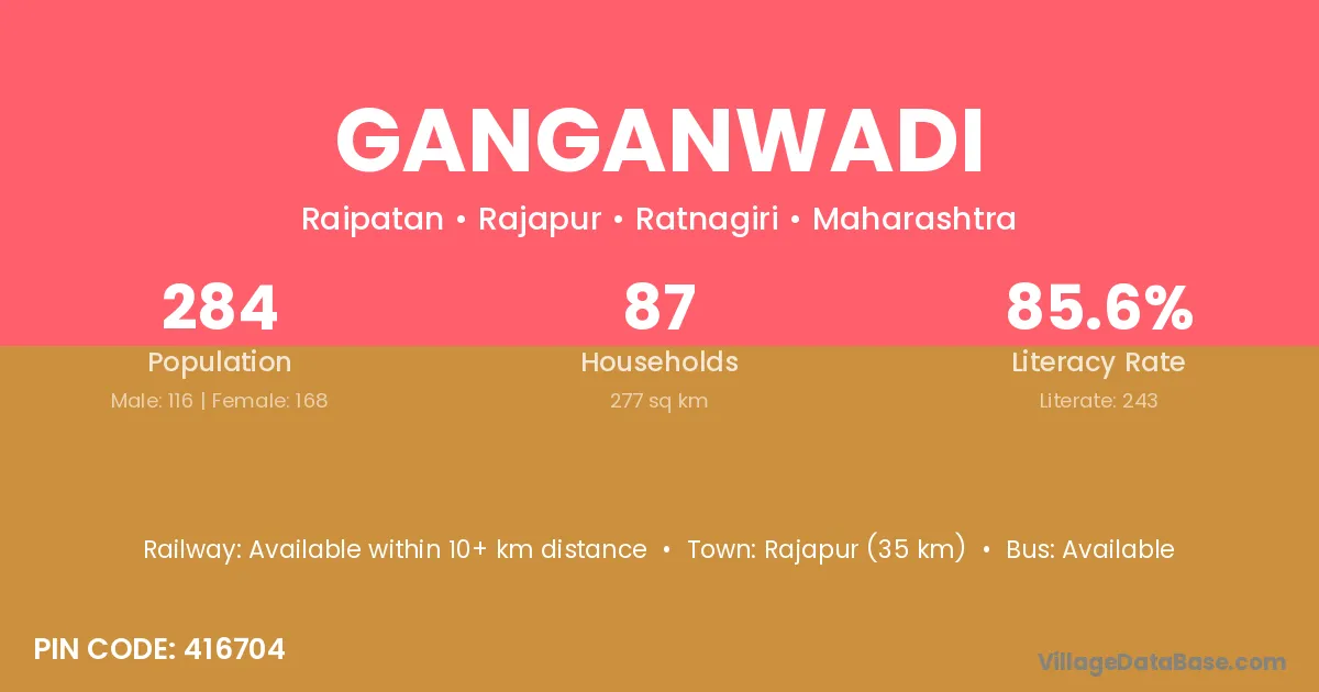 Rajapur (35 km) is the nearest town to Ganganwadi village for major economic activities and is located approximately 35 km away.