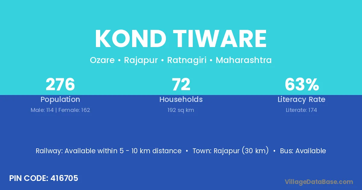 Rajapur (30 km) is the nearest town to Kond Tiware village for major economic activities and is located approximately 30 km away.