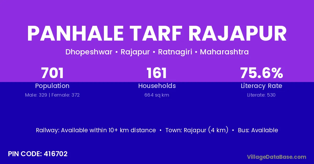 Panhale Tarf Rajapur village has a total population of 701 people, of which 329 are males and 372 are females.
