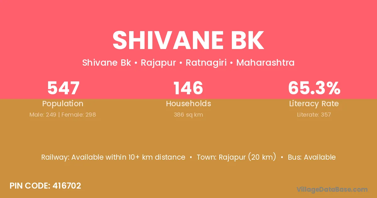 Rajapur (20 km) is the nearest town to Shivane Bk village for major economic activities and is located approximately 20 km away.