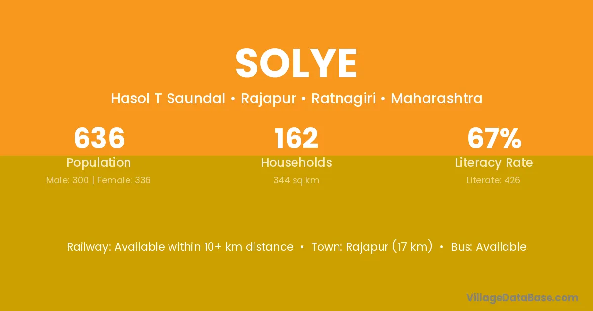 Rajapur (17 km) is the nearest town to Solye village for major economic activities and is located approximately 17 km away.