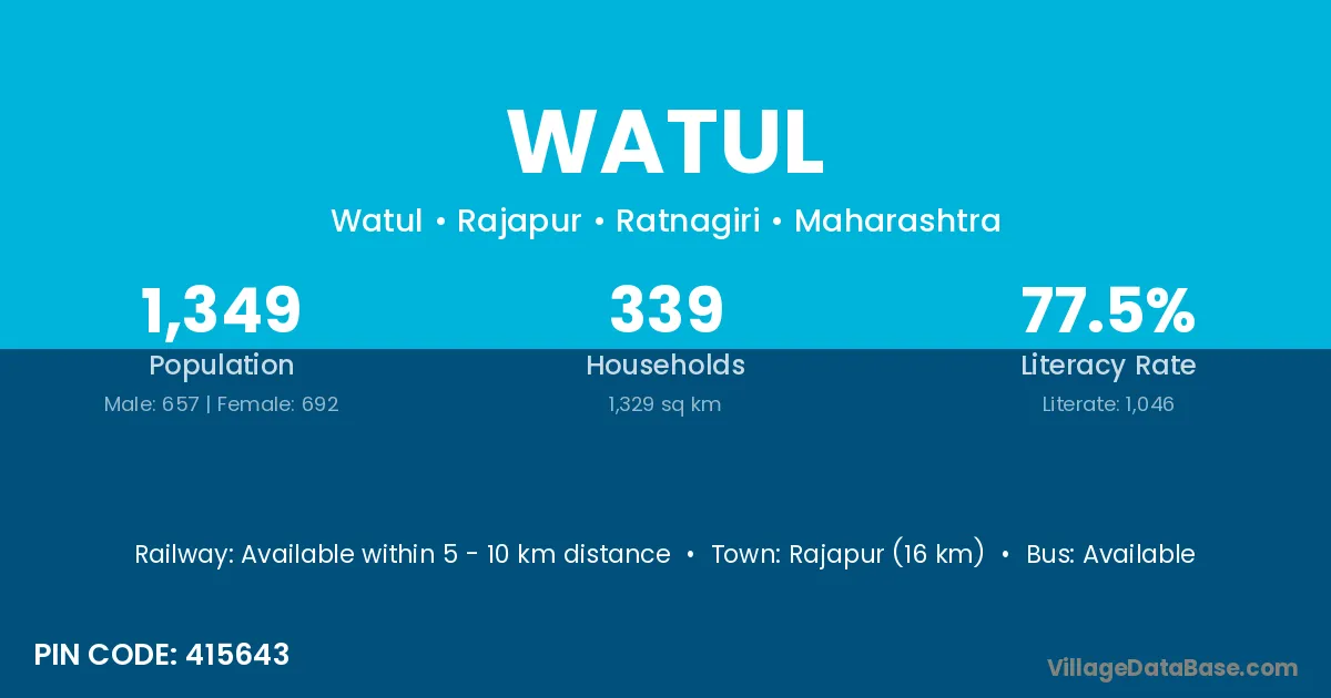 Rajapur (16 km) is the nearest town to Watul village for major economic activities and is located approximately 16 km away.