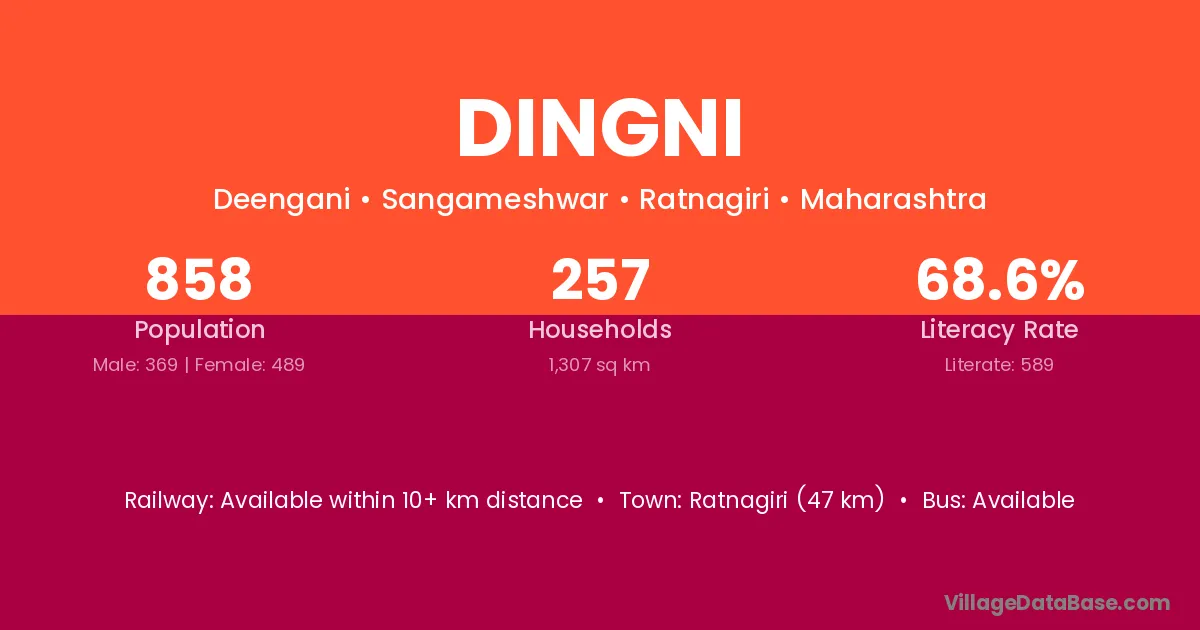 Ratnagiri (47 km) is the nearest town to Dingni village for major economic activities and is located approximately 47 km away.