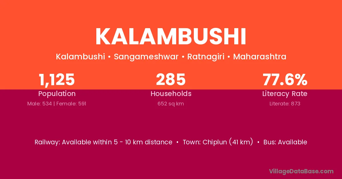 Chiplun (41 km) is the nearest town to Kalambushi village for major economic activities and is located approximately 41 km away.