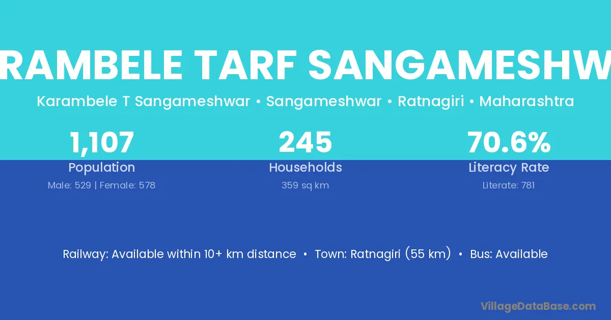 Karambele Tarf Sangameshwar village has a total population of 1,107 people, of which 529 are males and 578 are females.
