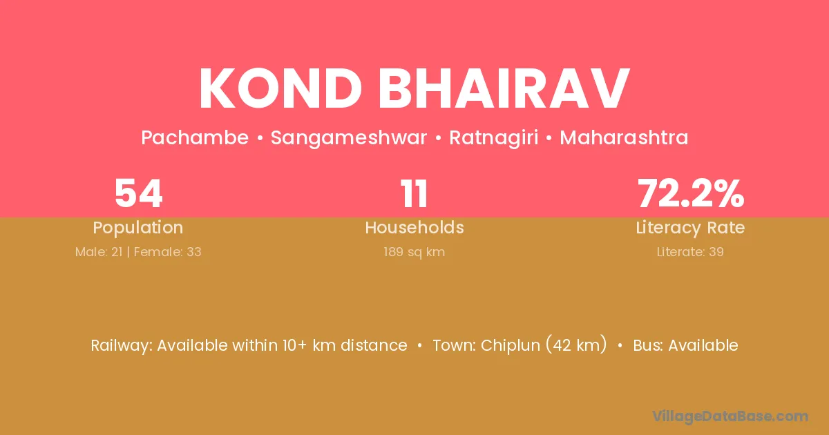 Chiplun (42 km) is the nearest town to Kond Bhairav village for major economic activities and is located approximately 42 km away.