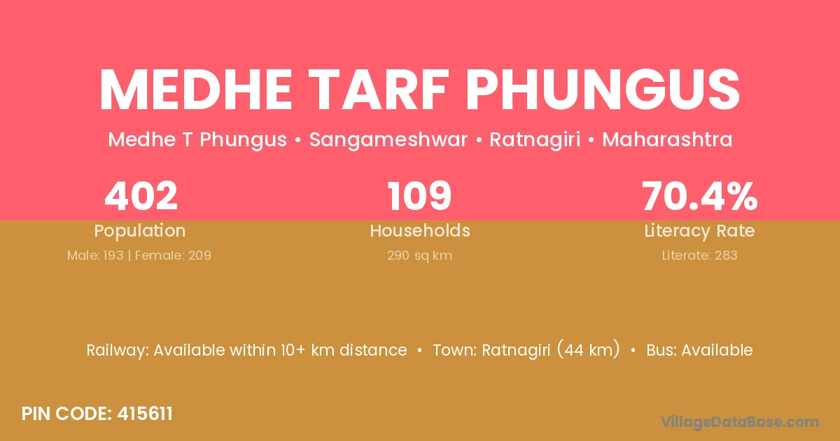 Medhe Tarf Phungus village has a total population of 402 people, of which 193 are males and 209 are females.