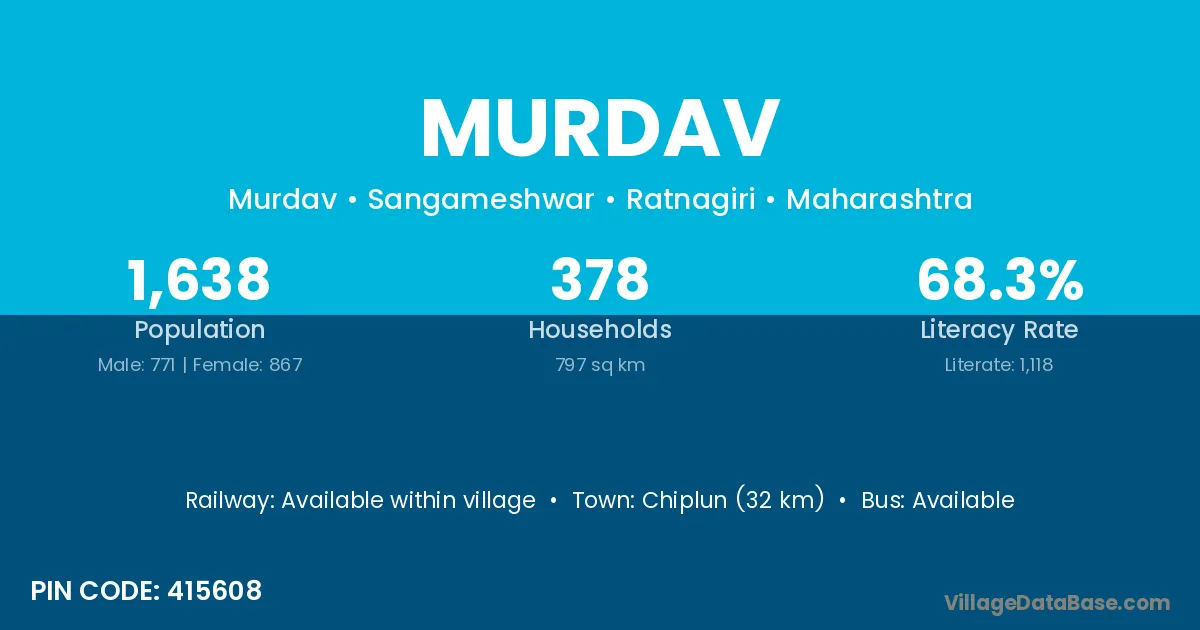 Chiplun (32 km) is the nearest town to Murdav village for major economic activities and is located approximately 32 km away.