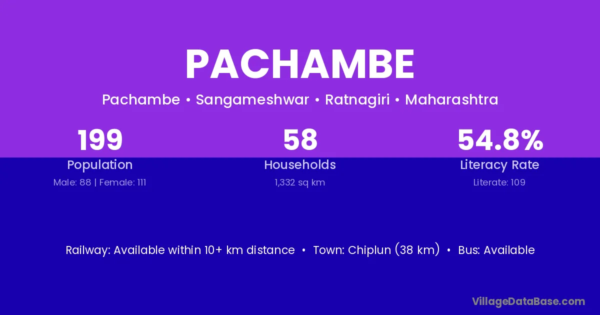 Chiplun (38 km) is the nearest town to Pachambe village for major economic activities and is located approximately 38 km away.