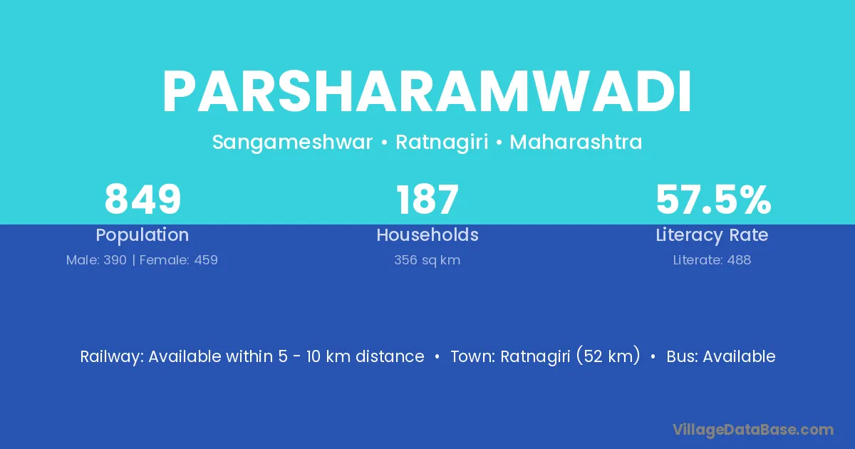 Ratnagiri (52 km) is the nearest town to Parsharamwadi village for major economic activities and is located approximately 52 km away.