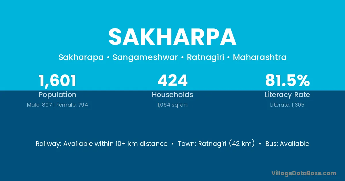 Ratnagiri (42 km) is the nearest town to Sakharpa village for major economic activities and is located approximately 42 km away.