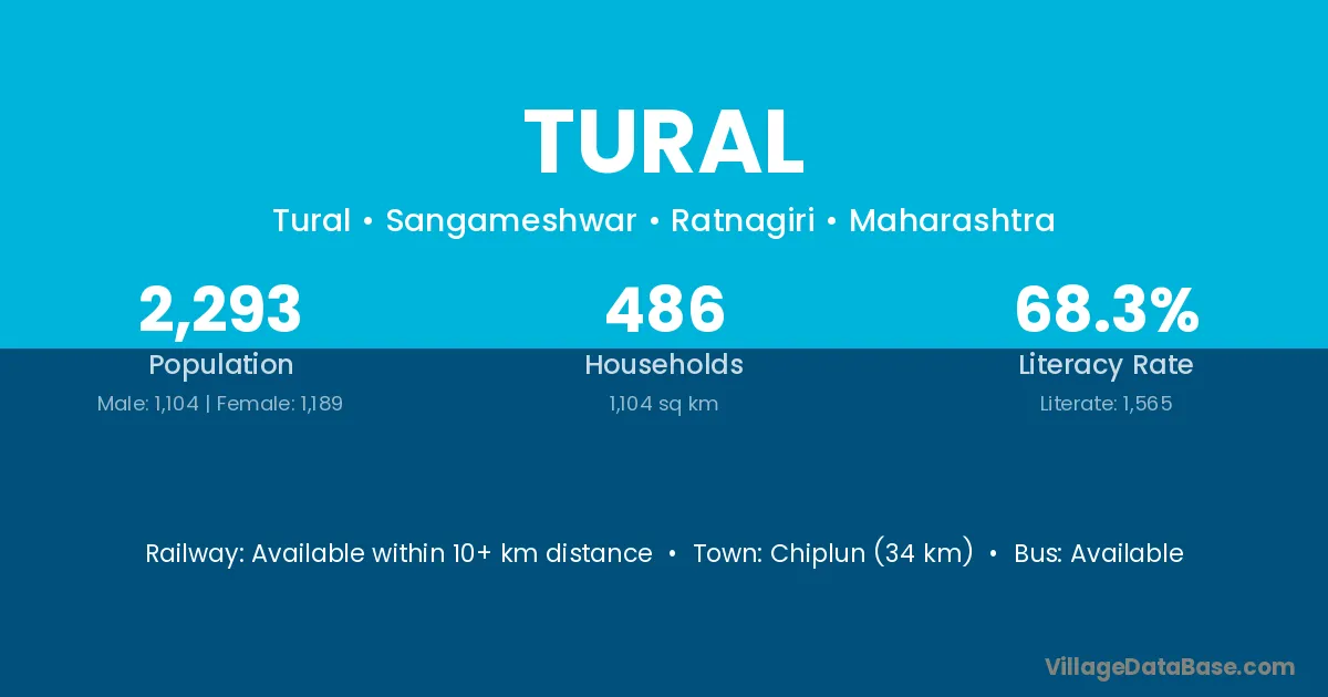 Chiplun (34 km) is the nearest town to Tural village for major economic activities and is located approximately 34 km away.