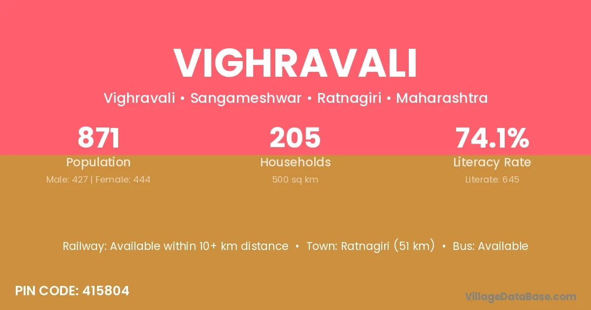 Ratnagiri (51 km) is the nearest town to Vighravali village for major economic activities and is located approximately 51 km away.