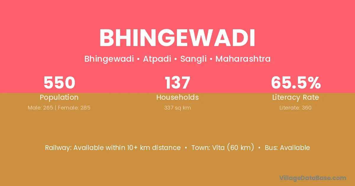 Bhingewadi village has a total population of 550 people, of which 265 are males and 285 are females.
