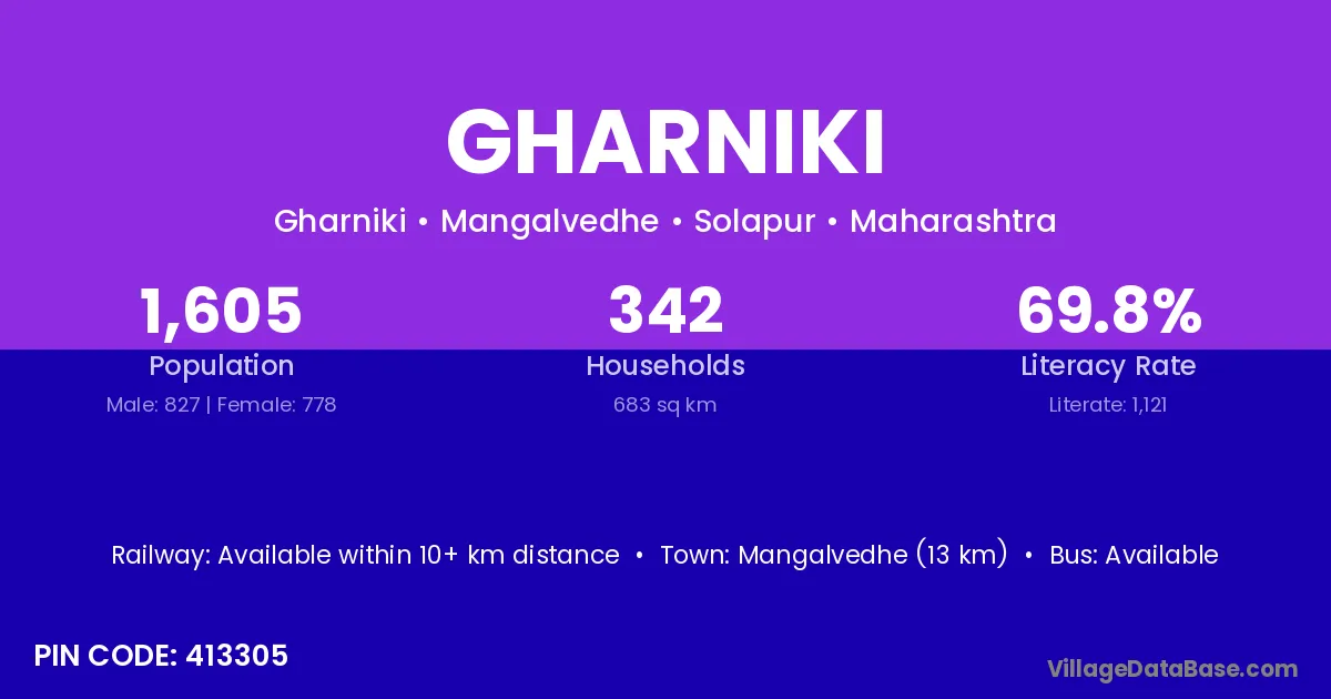 Vita (27 km) is the nearest town to Gharniki village for major economic activities and is located approximately 27 km away.