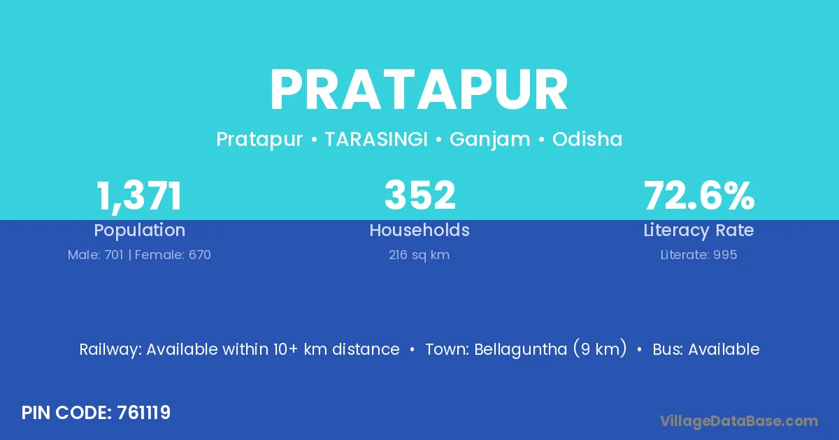 Pratapur village has a total population of 989 people, of which 516 are males and 473 are females.