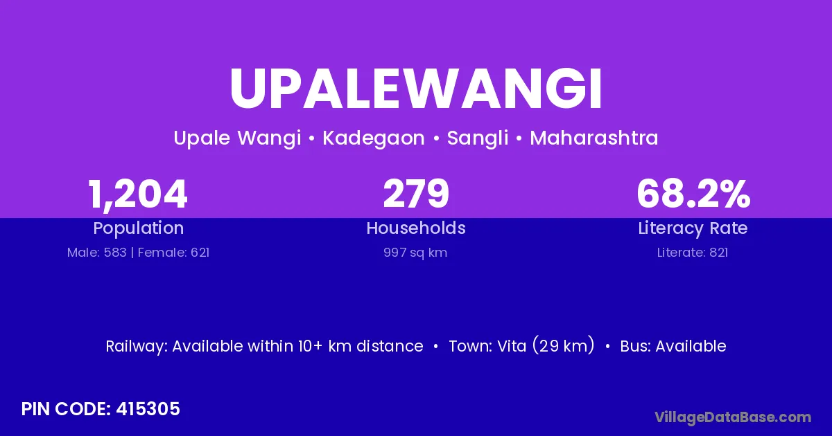 Vita (29 km) is the nearest town to Upalewangi village for major economic activities and is located approximately 29 km away.