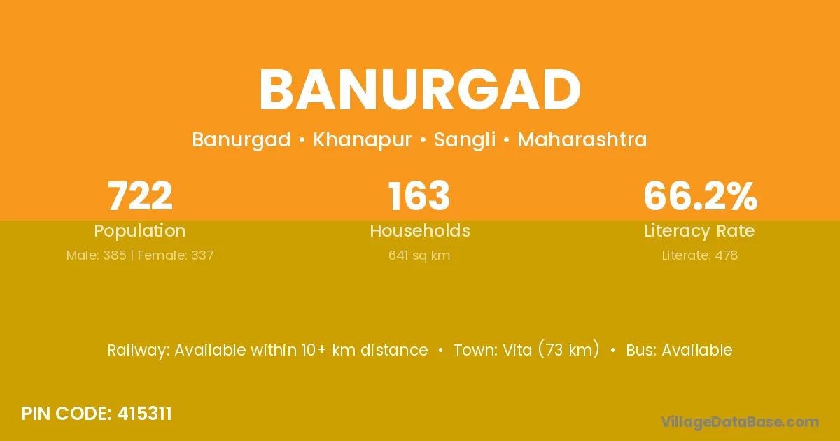 Vita (73 km) is the nearest town to Banurgad village for major economic activities and is located approximately 73 km away.