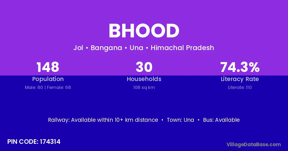 The literacy rate of Bhood village is 66.06%. Male literacy stands at 75.75% and female literacy at 57.27%.