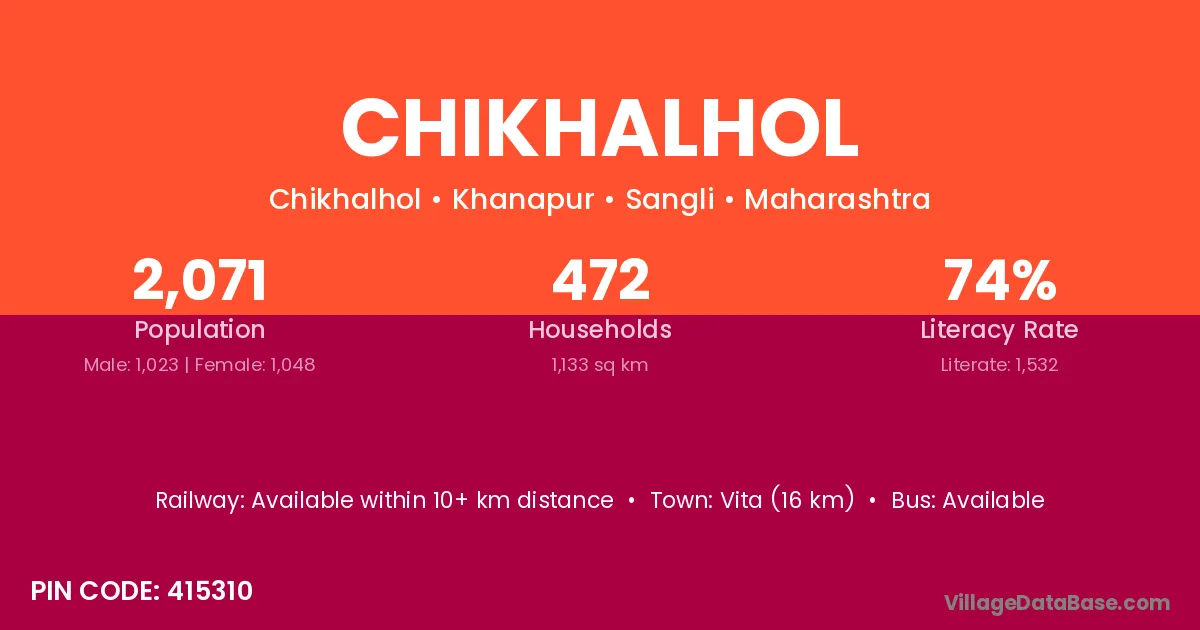 Vita (16 km) is the nearest town to Chikhalhol village for major economic activities and is located approximately 16 km away.