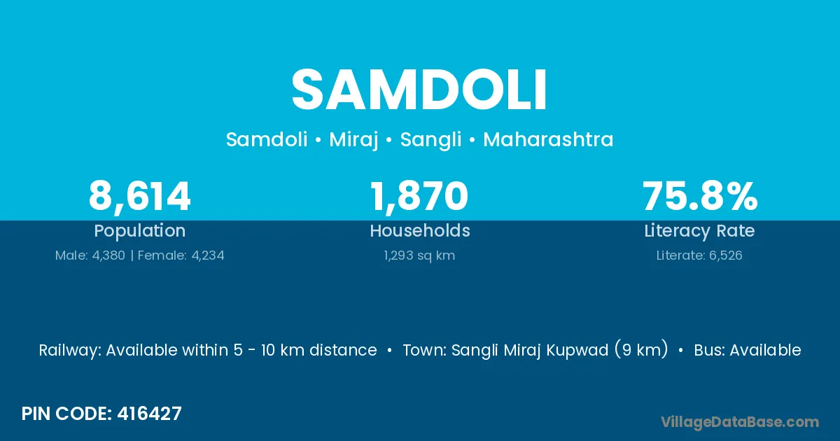 Sangli Miraj Kupwad (9 km) is the nearest town to Samdoli village for major economic activities and is located approximately 9 km away.